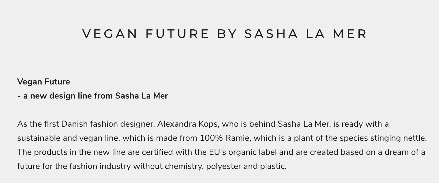 Det danske tøjbrand Sasha La Mer er luksus resort wear af det lækreste silke og høj kvalitet. Jeg hjælper med brandtekster og PR-tekster på dansk og engelsk til hjemmeside og PR-materiale.